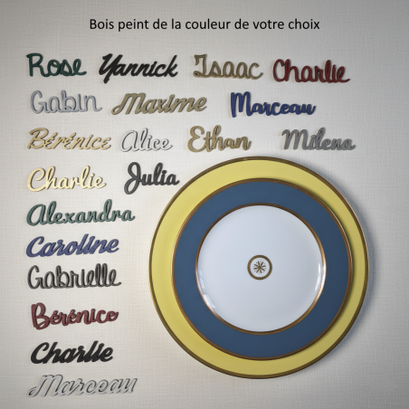 Les marque-places en couleur sont découpés au laser avec précision dans du bois médium, puis peints à la bombe.
