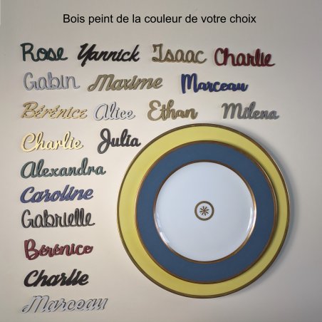 Les marque-places en couleur sont découpés au laser avec précision dans du bois médium, puis peints à la bombe.