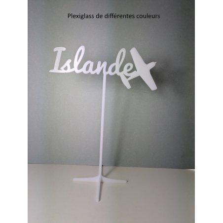 • Nom de table Personnalisé avec un Avion, en PLEXI, sur pic ou support