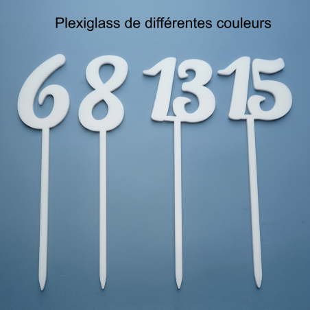 • Numéro en chiffre, en PLEXI, transparent et couleur, sur pic ou support