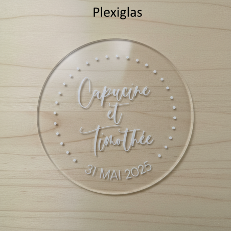 Sous verre personnalisé avec les prénoms des mariés et la date du mariage